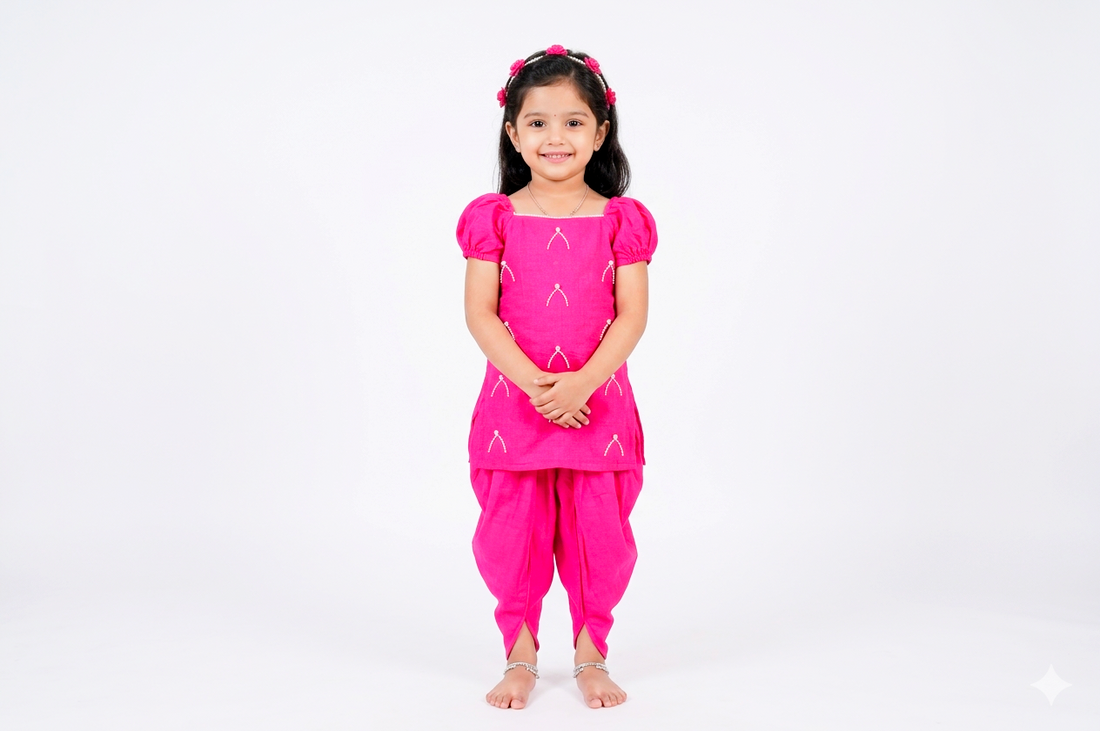 Girls Purple Printed Kurti with Dhoti Pant Set